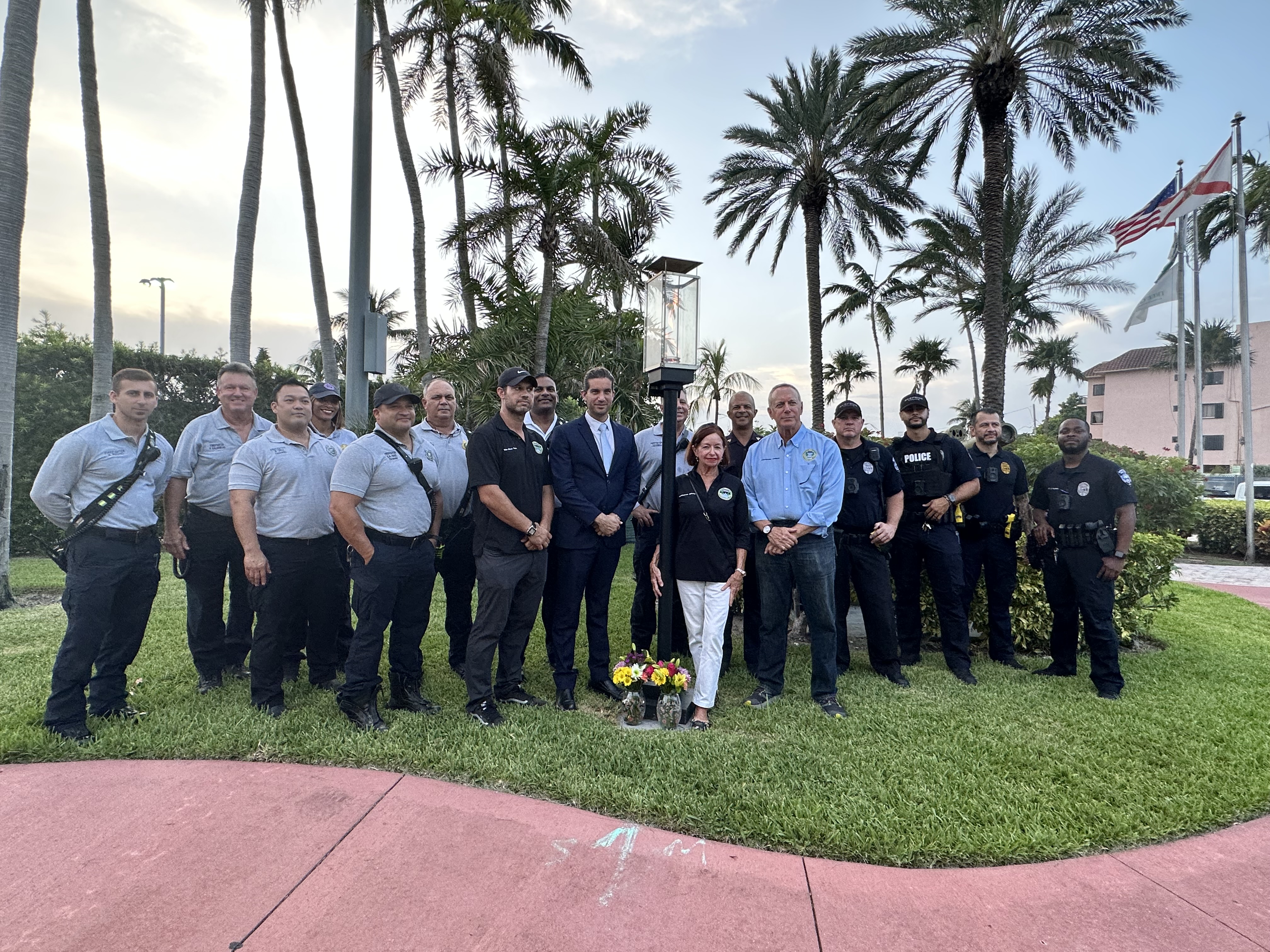 On Saturday, June 24 at 1:22 a.m., the Town of Surfside hosted a lighting of the torch in order to commemorate the 98 souls lost on June 24, 2021. Mayor Danzinger and Town staff were joined by Miami-Dade Fire Rescue Chief Raied Jadallah and Officer Maggie Castro who represented the first responders at the scene. The names of the 98 deceased were also read out loud by Surfside Chief of Police John Healy and Miami-Dade Fire Rescue PIO Erika Benitez.