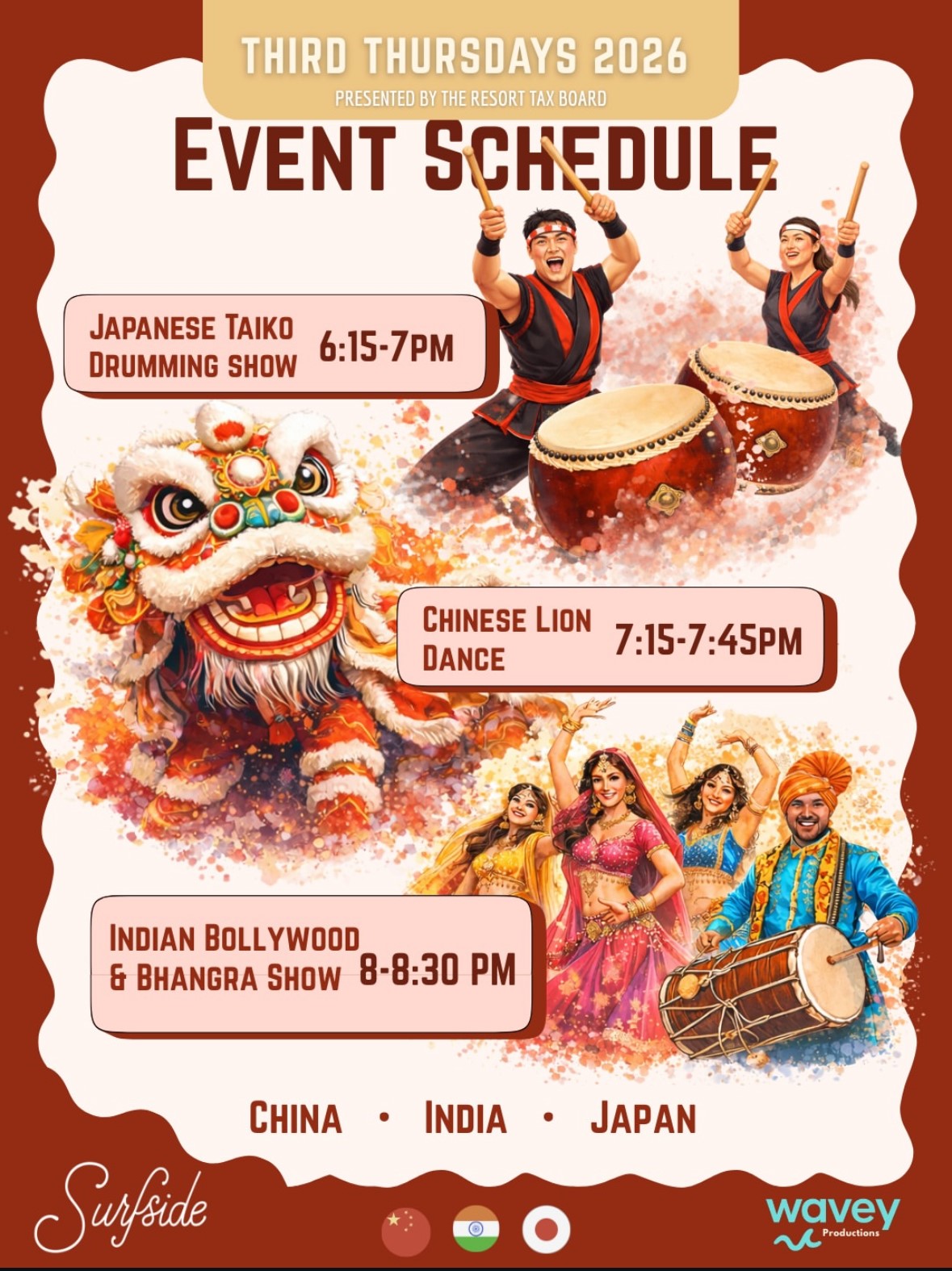 šThe 2026 Third Thursdays “Cruising the Globe” series brings the world to Surfside. Hosted at 93rd Street Town Hall, this lively monthly celebration will transform the area into a global destination, featuring three unforgettable regions and 9 amazing countries filled with vibrant culture, immersive activities, and festive energy for the entire community to enjoy.