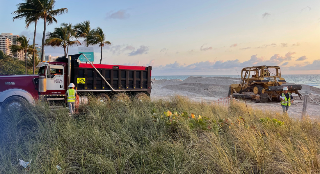 - Increased truck activity near 88th Street and along the designated staging area on the beach as sand is transported.