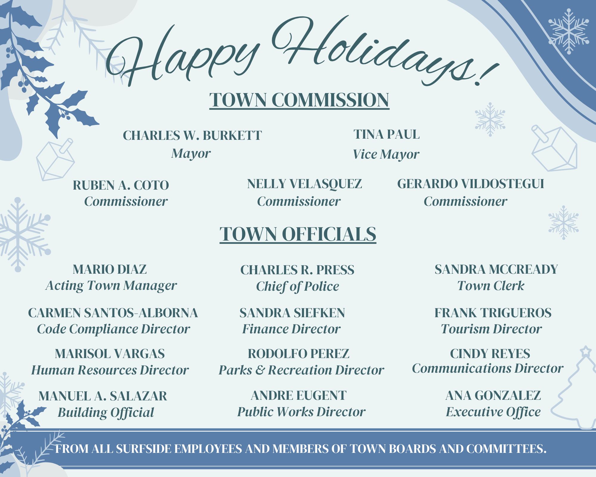 The Town of Surfside thanks the community for their understanding and support and wishes everyone a joyful holiday season and a prosperous New Year!