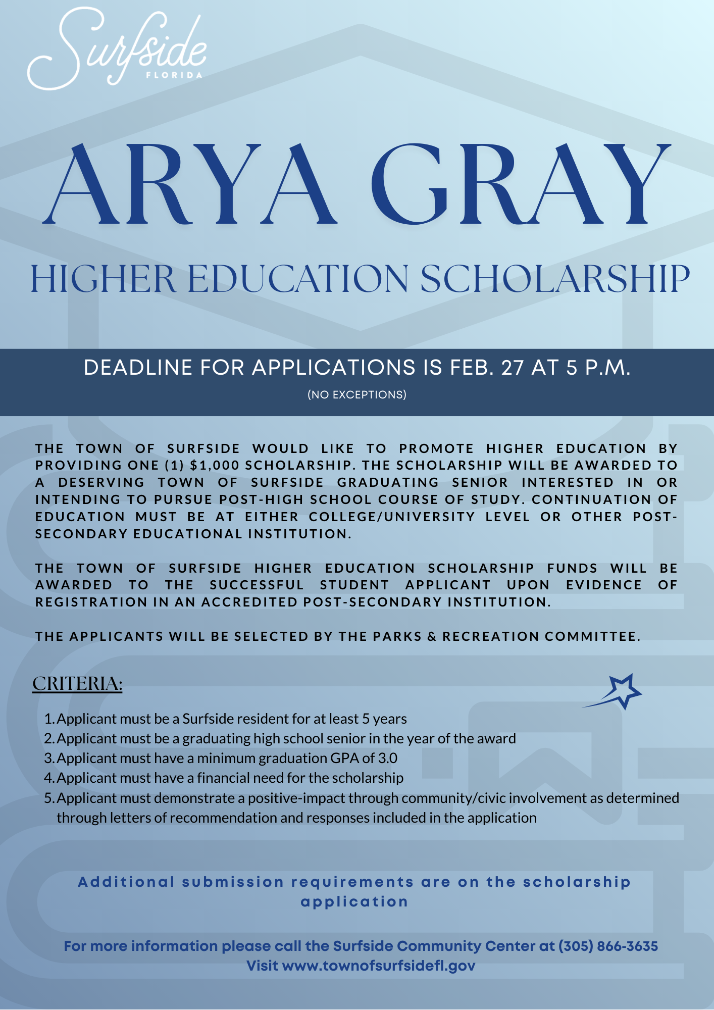 TOWN OF SURFSIDE ARYA GRAY HIGHER EDUCATION SCHOLARSHIP