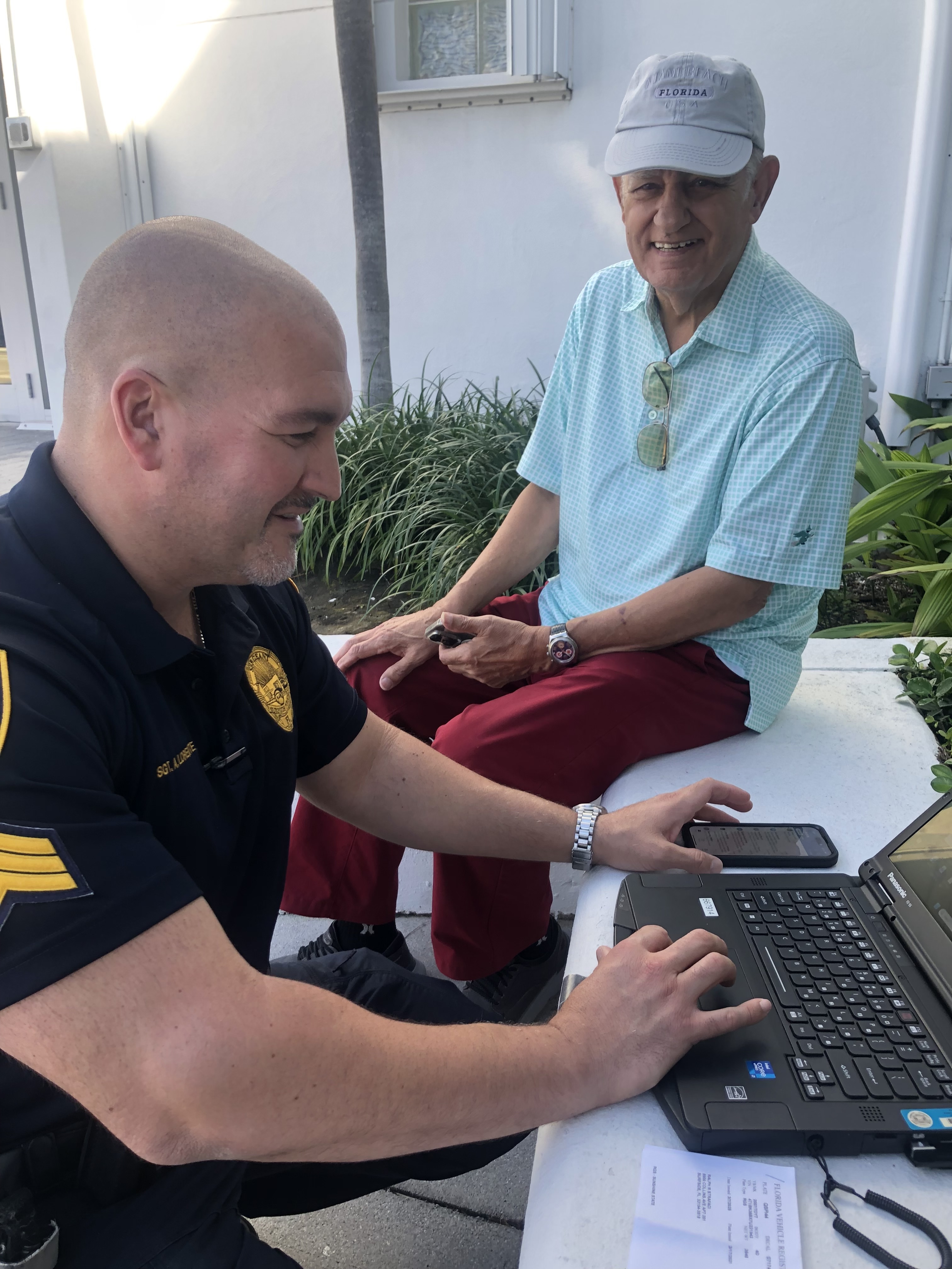 Sgt. Lorente of the Surfside Police Department took time out of his busy day to personally assist Ralph and Marylou Strafaci in registering for the Town’s new digital parking permit program, which allows residents to manage their permits online with ease.
