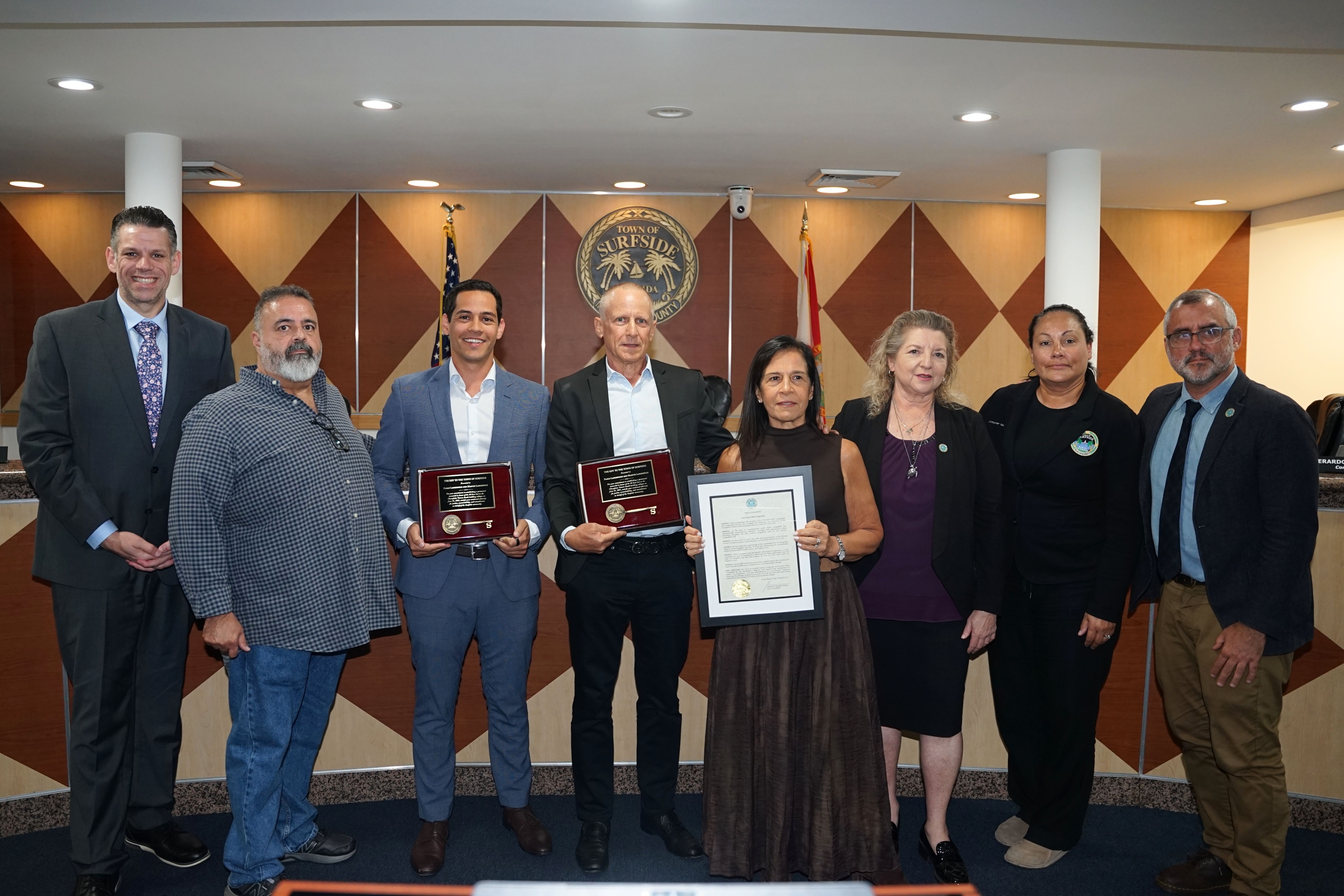The Town of Surfside presented a proclamation and Key to the Town to Pablo Langesfeld during the March 10 Town Commission meeting, recognizing his unwavering commitment to justice, transparency and remembrance following the tragedy at Champlain Towers South.