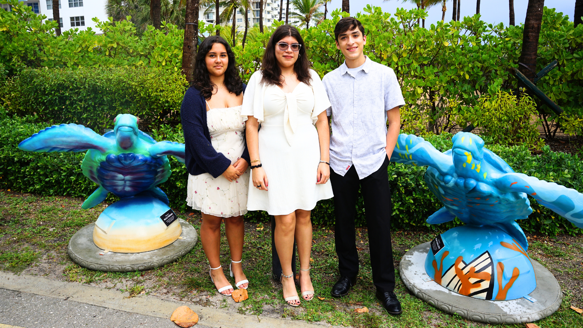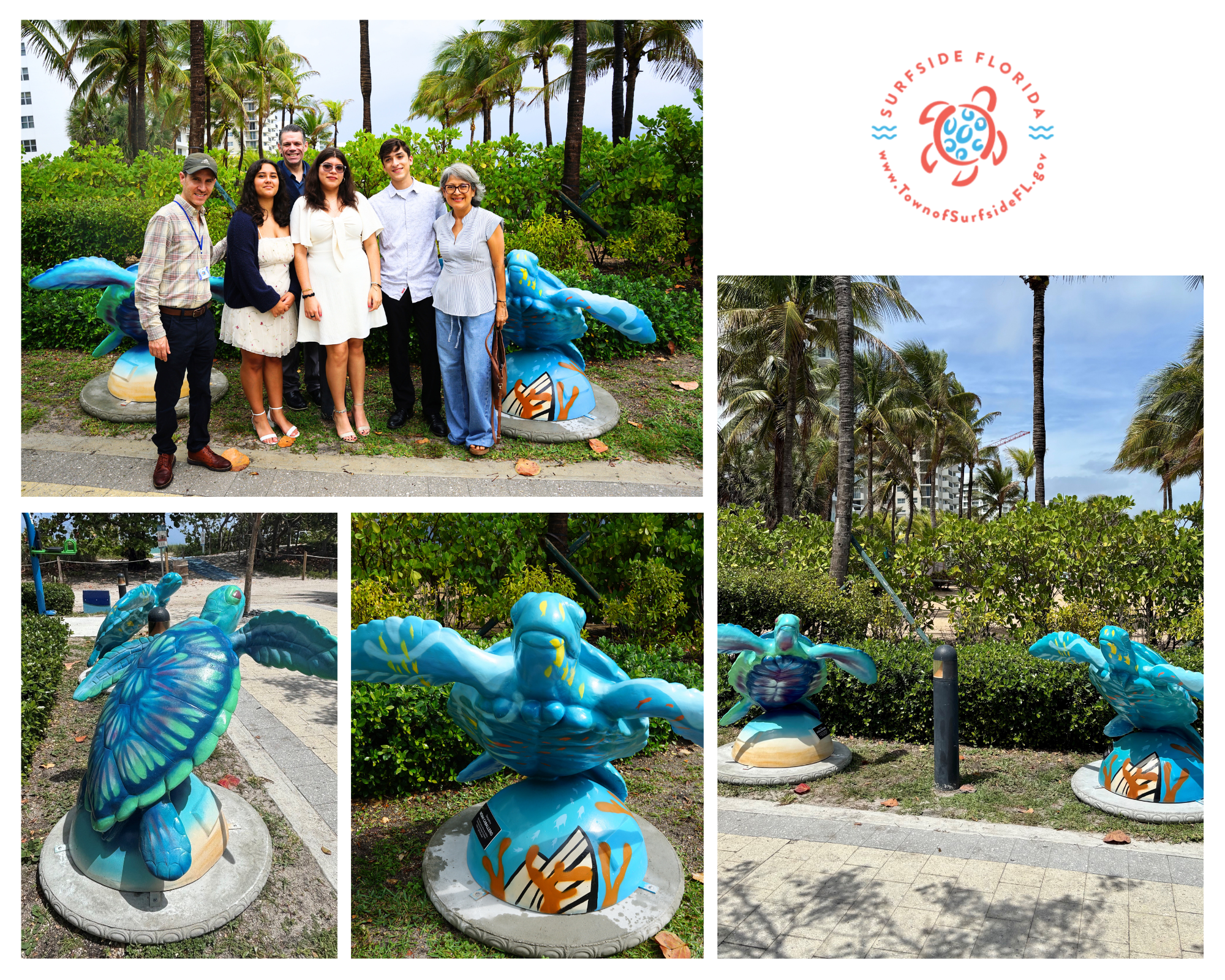 The Town of Surfside kicked off Earth Month by unveiling two new fiberglass turtle sculptures on Thursday, April 2, at the beach entrance located at 92nd Street and Collins Avenue. The colorful installations are the latest addition to the Town’s growing public art collection and have been individually designed by art students from New World School of the Arts (NWSA) as part of a Town initiative.